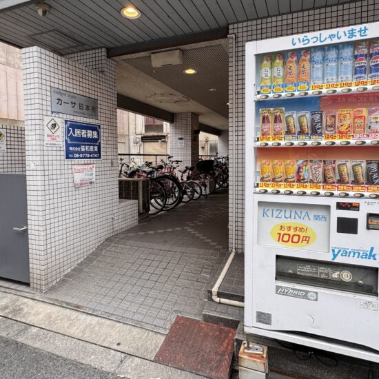 ※マンション住宅と共同の建物です。自販機左側駐輪場の奥にエレベーターがございます。