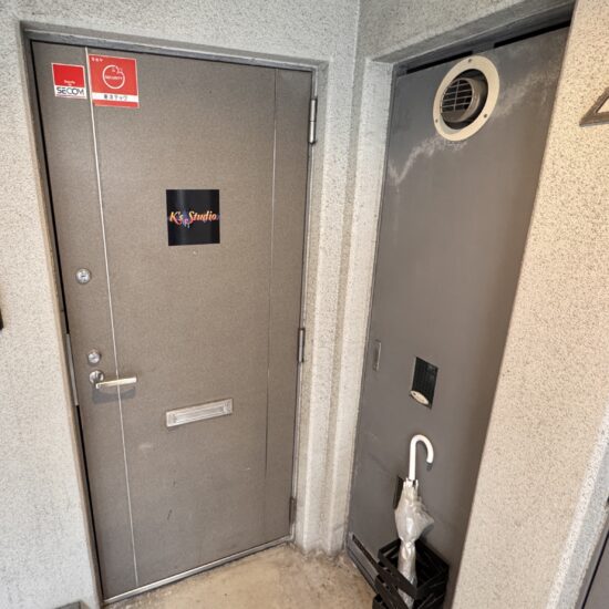 4階のK’sStudioのドア前にお越しいただき、インターホンを押してそのままお入りください。